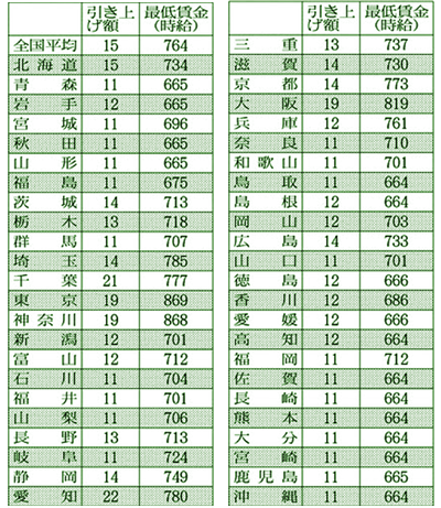 | 【最低賃金 東京都は令和4年10月1日から1,041円 】 東京都の最低賃金は、令和4年10月1日から1,072円となる(前年度より31円増)。 全国平均は 961円(前年度より31円増)。昨年度からの上昇率・引き上げ幅は、過去最大となる。各都道府県の新賃金も、令和4年10月から順次適用される。 R4.8.25 更新 |